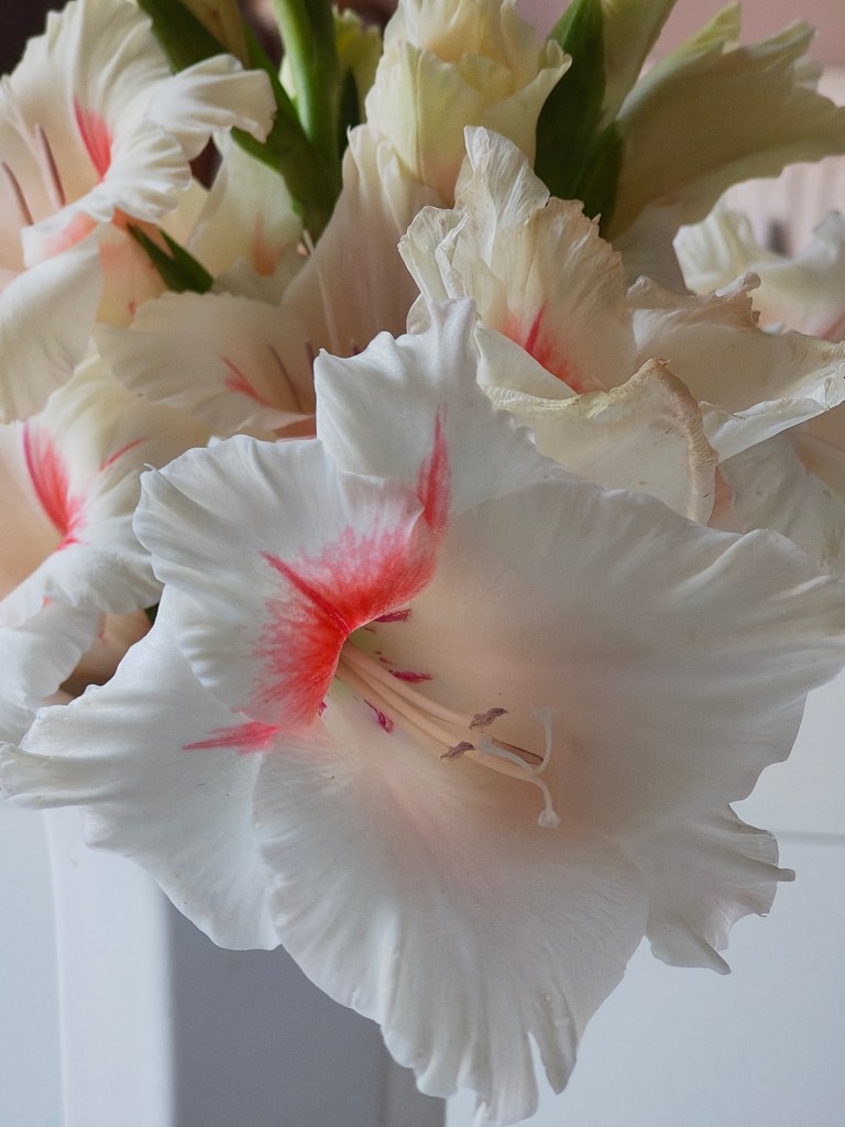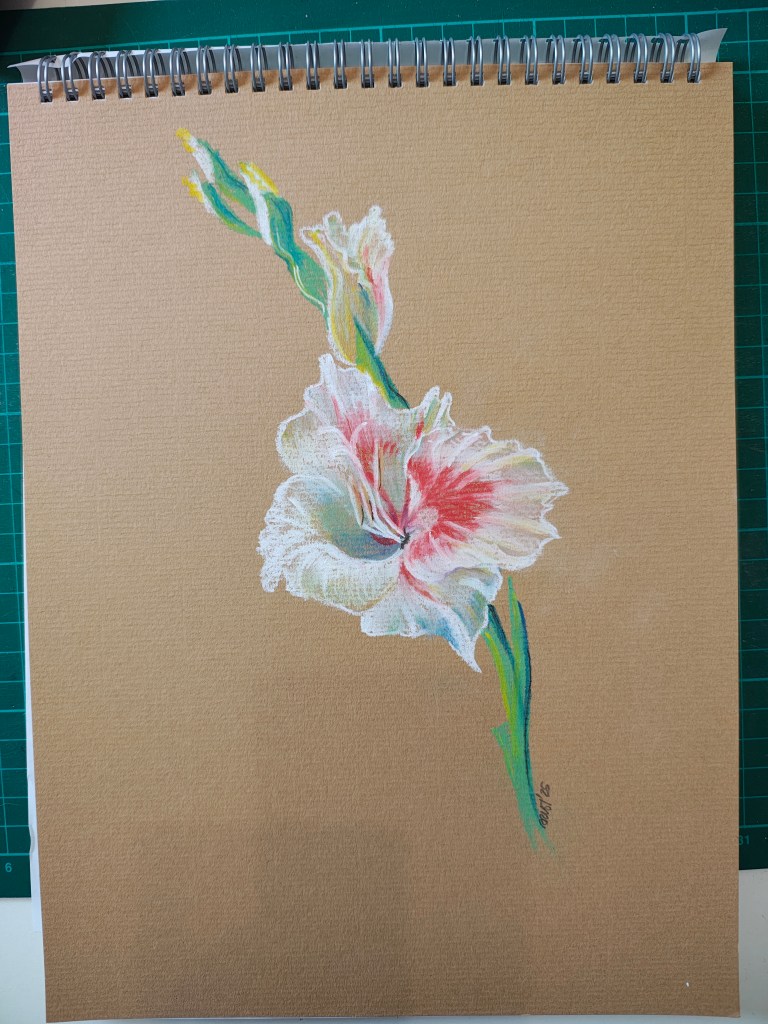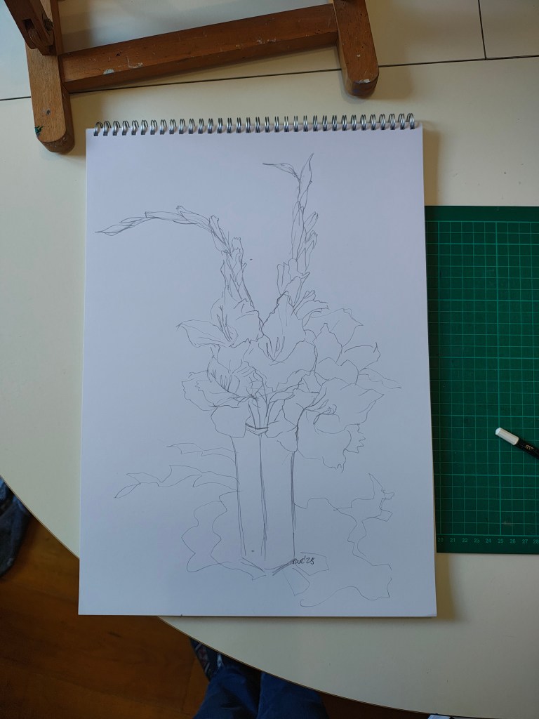 This weekend we had stormy weather which left some late blooming gladioli blown over in the garden and so I decided to pick a few for the house and use them for drawing practice this week.